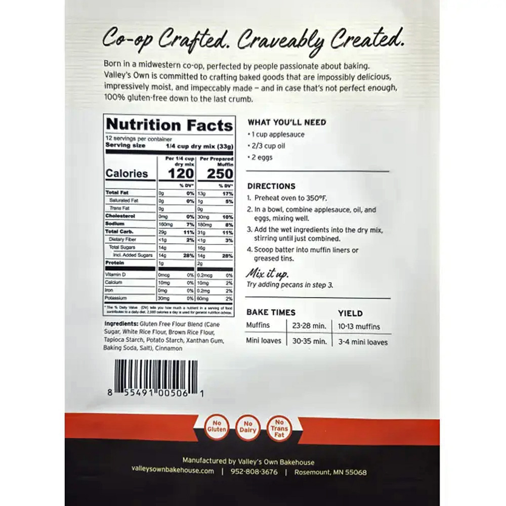 Certified Gluten Free and Dairy Free Apple Cinnamon Muffin Mix. Each package contains the base mixture to yield 10-13 muffins or 3-4 mini loaves.