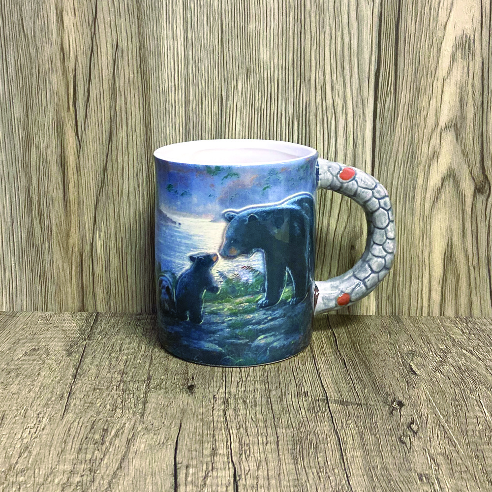This ceramic mug features a three-dimensional design of a mama bear and her cub in front of a river. Microwave safe so you can keep your coffee, tea, hot chocolate, or other beverage piping hot. To care for your mug, hand washing is recommended to preserve the details of the design