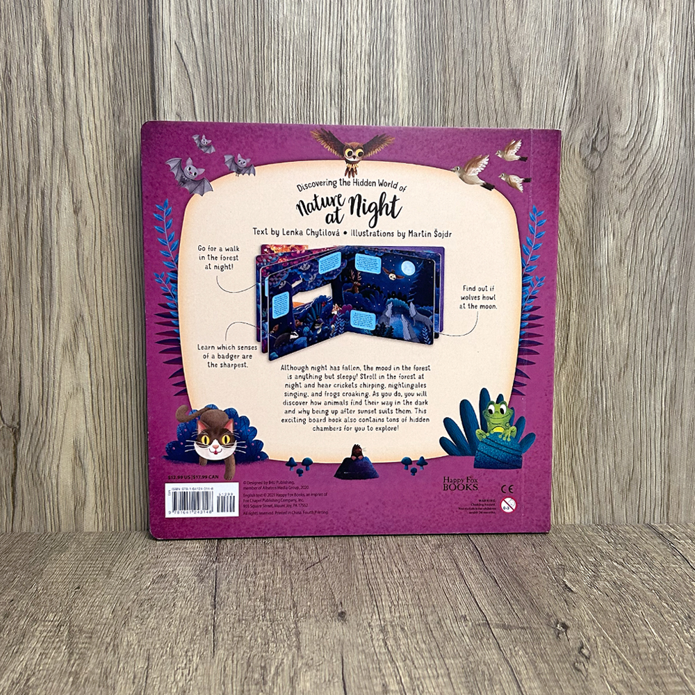 Have you ever thought about what life in nature is like long after you’ve gone to sleep? This whimsical children’s book takes young readers on a unique adventure into the woods at night to see what the amazing forest animals within it are up to! Featuring stunning illustrations, educational captions, vocabulary words, cut-out accents, and hidden chambers, each turn of the page.