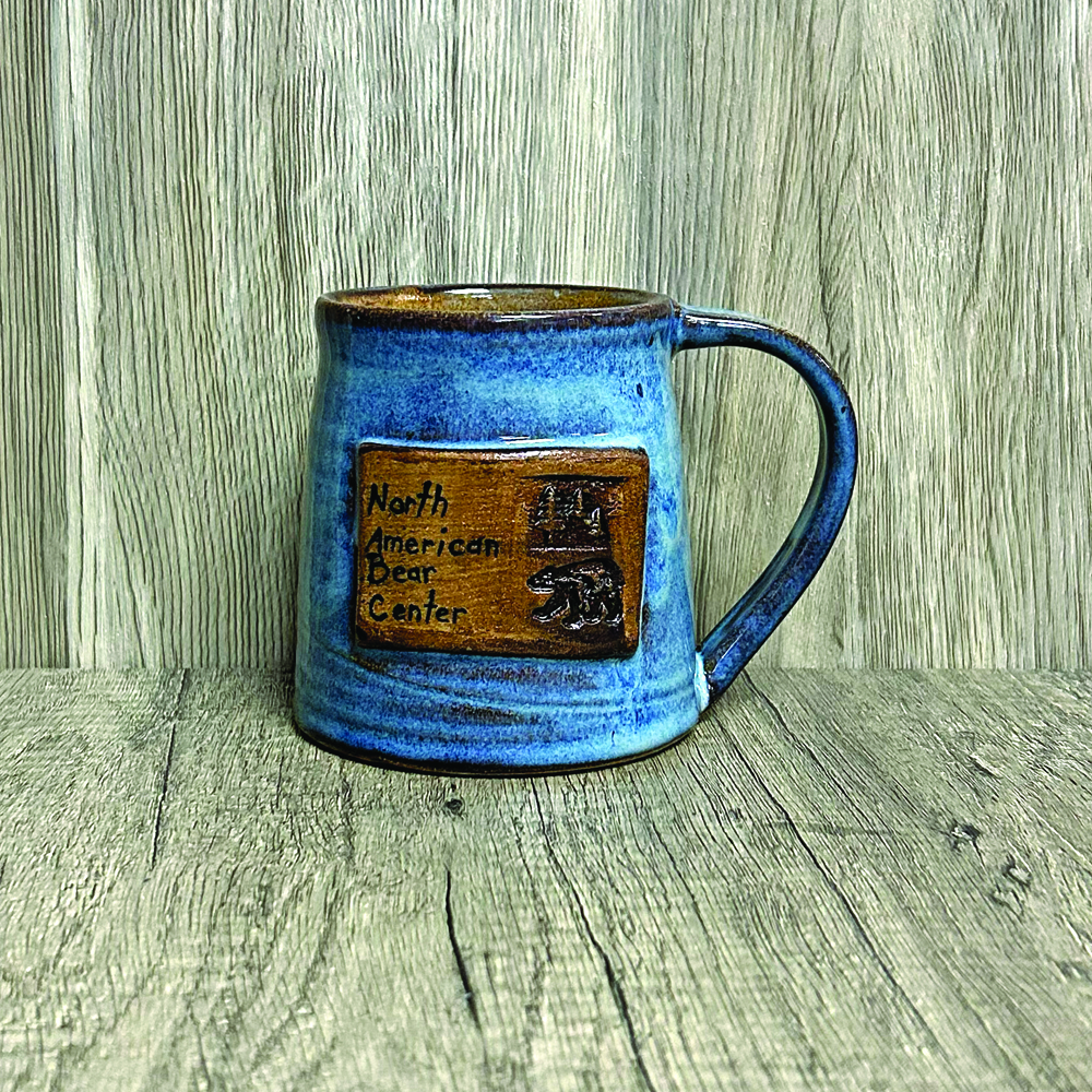 These unique 12 oz. pottery mugs, custom crafted exclusively for the North American Bear Center by a talented local artist in Ely, MN! Each mug is its own distinct color and design, blending bluish and brown tones. Standing approx. 4 inches tall and 3 1/2 inches wide, these mugs are —lead-free and safe for the microwave, oven, and dishwasher.
