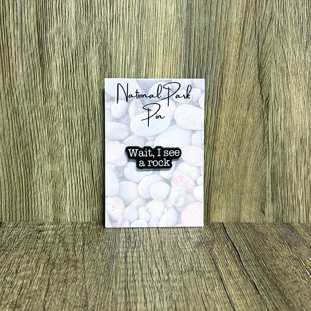 Laugh with this fun “Wait, I See A Rock” enamel and metal Pin! A captivating accessory that celebrates the spirit of adventure that nature lovers can relate to. Attach it to backpacks, jackets, or hats to showcase a love for hiking and the great outdoors. Measures 1.5″ x .5″. Made with quality materials, this enamel pin offers durability.